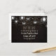 Vykort med rustisk träbakgrund med vackert hängande ljus lökar ge det land utseende ... Anpassa den med dina detaljer och ha det bästa och mest oförglömliga tillfälle.