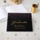 Klass av 20xx eller något år. För ett modernt och trendig studenten firande. En chic svart bakgrund med rosa- och lila-konetti. Texten: Student är skriven med ett stort handskript i stil. Mall för namn och år. Lägg till en egen text på ryggraden.
