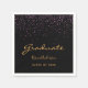 Ett modernt och trendig studenten firande. En chic svart bakgrund med lila konetti. Texten: Student är skriven med ett stort handskript i stil. Mall för namn och år.