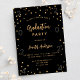 Ett glamoröst inbjudningskort för en studentfest för både honom och henne. En svart bakgrund med faux guld-stjärnor. Anpassa och lägg till information om namn, år och party. Texten Studenten och namn är skrivna med ett modernt handskript i stil. Golden färgad.