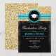 Inbjudan till studenten - Svartahavandet i Guld. Utformning av eleganten i faux glitter guld och svart med och en antydan om turkos aqua blue. Perfekt för en kvinnas studentfest.
