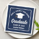 Den här pappra napkin-studentfesten för marinblått och vitt anpassningsbar har klassisk typografi av din high school eller College namn för 2025-klassen. Anpassa med ditt graderingsår under handskrivet skript för chic och svart graderingshölje för underbar personlig student dekor.