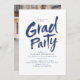 Modern penselskriptutformning Studenten-inbjudan i blått och vitt, med foto i baksidan, enkel och unik. Anpassningsbar den med egna foton och gradera party-information.