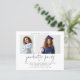 Ett ekonomiskt alternativ i BUDGET på en mindre storlek på 4,5 x 5,6 tum (110 lbs vikt), som är av samma tjocklek som ett vykort (är dock inte lämpligt för använda som vykort). OBSERVERA ATT DET FINNS EN inbjudan per lakan. Budget Modern 2-fotoskriptStudentfest. Byt bara ut de två exempelbilderna mot dina egna och anpassa dem till din information om party. Studentfesten finns i ett skript för snyggt set.