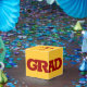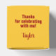 KLASSIFICERING i fetstil med röda bokstäver runt framsidan av dessa gult guld 2-tums fyrkantiga studentfester med ditt namn och tack för ditt meddelande längst upp. Fyll med behandlingar som ett tack till gästerna vid din studentfest. MATCHING-objekt och mer färg i vår samling.