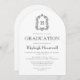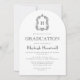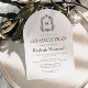 Den här klassiska inbjudan till studentfest innehåller ett svart monogram som inledning i ett öppet serieteckensnitt som omges av en acanthus-vapensköld på en trendig med skiftformad vit bakgrund. Anpassa texten till uppgifterna om student namn och party. Kortets baksida är helt vit. Perfekt för en högskola, högskola eller universiteten student.
