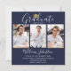 Studentfesten elegant Navy Blue Script 4 Photo Inbjudningar