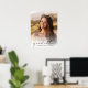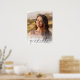 Elegantens studentfest poster välkomsttecken som visar gradens överlagrade bild med "student" i ett modernt skript och deras namn och klassår i enkel typografi.