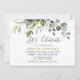 Inbjudan till Studentfest av vattenfärgen Eucalyptus Greenery.