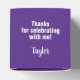 KLASSIFICERING i fetstil, vita bokstäver, radbryts runt framsidan av dessa lila 2-tums fyrkantiga studentfester med ditt namn och tack för ditt meddelande längst upp. Fyll med behandlingar som ett tack till gästerna vid din studentfest. MATCHING-objekt och mer färg i vår samling.