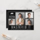 Modern magisterexamen svart studenten-meddelande och partiinbjudan med 4 bild fotokollage, "Mastered it" skriven i stort vitt brev och hans eller hennes klassår, namn och skola eller universiteten i vanlig vit typografi. På baksidan lägger du till informationen om grad party.