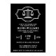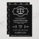 En inbjudan till studentfest i elegant. Med den ikoniska skalan av rättvisa, en tidlös symbol för lag och rätt. En sofistikerad och snyggt design i en svart och vit palett med färg. Perfekt för student. Textmallarna är enkla att anpassa. Tillgängligt som utskrivna kort eller som en omedelbar nedladdning att skicka på din mobil.