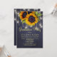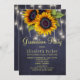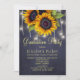Mall för inbjudan till snyggt av Rustic land stil på mörken midnatt, blå krita med botten av stora guld solblommor i gult och strängar av twinkle ljus. Fyll i informationen på plats. Du kan välja att anpassa den ytterligare genom att ändra typsnitt och färg på text. — Inbjudan är lämplig för utomhusträdgård/trädgårdsgård, rustik land studenten och party. — Kontakta mig om du behöver hjälp!