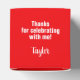 KLASSIFICERING i fetstil, vita bokstäver, radbryts runt framsidan av dessa röda 2-tums fyrkantiga studentfester med ditt namn och tack för meddelandet längst upp. Fyll med behandlingar som ett tack till gästerna vid din studentfest. MATCHING-objekt och mer färg i vår samling.