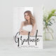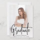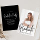 Modern inbjudan till studentfest med lodräts foto på framsidan med "Student" som visas i ett handskrivet svart skriptöverlägg. Anpassa studentfesten inbjudan till fotot med namn, namn och studenten i student. Den enkla inbjudan till studentfest går tillbaka till visning av dina party-uppgifter med vit text med en solid svart bakgrund. Fotot studentfest inbjudan är perfekt för både high school och College student!
