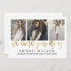 Modern 3-fotosamlingsinbjudan med guld-manuskalligrafi där det står "Hur studentfesten går förbi" vid sidan av detaljer i modernt trendig-typografi.