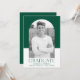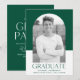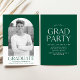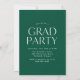 Enkel inbjudan till studentfest och snyggt med student-bild inuti en båge ram med grönt och vit färg-blockbakgrund. "Student" visas i grönt med ett modernt brev med namn, skolan och studenten som visas nedan. På baksidan av inbjudan till studentfesten för grönt finns information om studentfesten.
