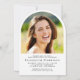 Fira din grad med en studentfest med stor elegant och med en fotoöverlagrad med "student" i ett snyggt vitt skript med dekorationer och deras namn-, skola- och klassår i modern vit typografi. Lägg till ett andra foto på baksidan och anpassa informationen om studentfesten.