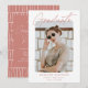 Trendig studentfest inbjudan med bilden av student på framsidan med ett vitt, ojämnt kant gräns. "Student" visas i ett skript som namnteckning mörk ro rosa med student namn, skola namn och studenten som visas nedan. Den moderna studentfesten inbjudan återgår till att visning din studentfest med en unik rosa i mörk ro och vit stämpelbakgrund i mönster. Studentfesten inbjudan är perfekt för både högskoleexamen och party.