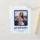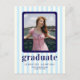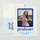 Fira i stil med vår inbjudan till chic och studentfest! Den här designen har en ljusblå och vit rand som bakgrund och är försedd med fetblå text för att ge contemporaryn en slimmad fläck. Perfekt skräddarsydd för att visa ett omhuldat foto, det är ett sofistikerat sätt att gå med firande.