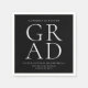 Dessa enkla, moderna blöjor av studentfest har en minimalistisk vit text på svart bakgrund. Anpassa dem till student namn, skolår och klassår.