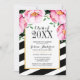 Elegant klass för 2023-studentfestens inbjudningar. Utformningen har rosa vattenfärgblommor, faux guld glitter gräns med svart och vitt diagonalt rand. En utformning av chicen för en högskola eller högskola i student. Mönster är platta tryckta illustrationer/grafik - INTE FATUAL GLITTER.