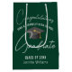 Den här chicen är en mörk grönt presentpåse för studentfest till en högskola eller högskola i student för 2025 års klass. Anpassa med ditt namn under det moderna handskrivna skriptet och grått grad sockel för underbara personlig studenten presenter.