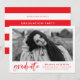 Inbjudan gäster till studentfesten med vår snyggt, Modern Watercolor Push Script-studentfest inbjudningar! Den moderna studentfesten bjuder in visningen student-fotot i vitt med "student" i ett trendig-skript med röd vattenfärgborste. Lägg till student namn, skolan, studenten och framtida planer. Inbjudan går tillbaka till en röd och vit strimlad bakgrund med utrymme för information om party.