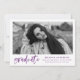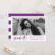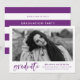 Inbjudan gäster till studentfesten med vår snyggt, Modern Watercolor Push Script-studentfest inbjudningar! Den moderna studentfesten bjuder in visningen student-fotot i vitt med "student" i ett skript för vattenfärgpensel i trendig lila. Lägg till student namn, skolan, studenten och framtida planer. Inbjudan går tillbaka till en lila och vit strimlad bakgrund med utrymme för information om party.