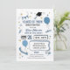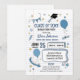 Inbjudan till studentfest på en anteckningsbokssida blå