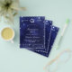 Observera att inbjudan är papper och mycket tunn. Kuvert ingår inte. Om du vill ha mer omfattande inbjudningar (samma design) kan du besöka vår butik. En marin blå bakgrund, dekorerad med faux glitter, gnistor. Den blå färg är ojämn. Anpassa och lägg till information om namn och party. Texten studenten och namn är skriven med ett modernt handskript i stil.