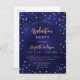 Ett glamoröst inbjudningskort för en studentfest för både honom och henne. En marin blå bakgrund med faux guld-stjärnor. Den blå färg är ojämn. Anpassa och lägg till information om namn och party. Texten Studenten och namn är skrivna med ett modernt handskript i stil. Golden färgad.