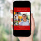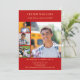 Skapa din egen unika fotokollage. Använda fyra, fyra av dina favoritfoton. Anpassa och lägg till information om namn och party. Röd bakgrund färg.