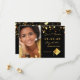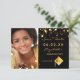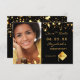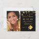 Ett foto Spara datumkortet för en studentfest 20XX. På framsidan: Lägg till ett eget lodrät storlekt foto av student. En chic svart bakgrund färg, dekorerad med faux guld-stjärnor. Anpassa och lägg till namn och datum. Golden brev. Namn och texten: Spara datumet är skrivna med ett modernt handskript i stil.