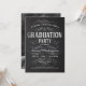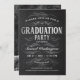 Studentfestinbjudningar Scrollwork med fauxsilver omkullkastar. Minimalist vintage, formell, utsmyckad, elegant gammalmodig calligraphyscrollwork på svart tavlabakgrund