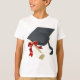 Svart studentendiplomhatt och diplomparchment som är hoprullad och säkras med ett rött crimson kulört band