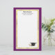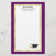 Papper med lila bakgrund och ram överst, med faux-/simulerad guld-folie gräns. Illustrerad med studentmössa och diplom vid grund. Anpassa med ditt namn och adress. Enkel och elegant.