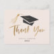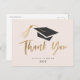 Anpassa den här snyggten och tack för det moderna studenten-vykortet med ditt namn. Med ett övertoningshölje med guld-tassel och ett modernt penselskript som säger "Tack" i guld. Lägg till returadress och anpassningsbar på baksidan.