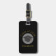Loggage tag som säger Klass 20xx och student namn, skriven i färg guld. Designad med en svart studentmössa omgiven av en halvgenomskinlig vit cirkel. Den svarta bakgrunden med guld-bokstäver är enkel än snyggt.