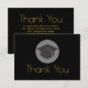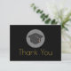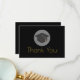 Ett tack för studenten som du har designat med en svart studentmössa omgiven av en halvtransparent vit cirkel. Den svarta bakgrunden med guld-bokstäver är enkel än snyggt. Personlig på baksidan.