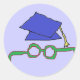 Platt med utformning i fullt färg av en hatt och glasögon från studenten