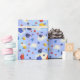 Färgfulla studentmössor kastas in i luft och visas mot ett blå himmel med fuktiga moln. Perfekt för inslagning av studenten-gåvor!