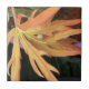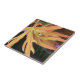 Bilden på den här lilla keramiska plattan är ett originalfoto av HomeWare från löv på en ung korallfabrik. Växterna har palmat löv vars broschyrer har noterat kant. Efter ett skift i färg ser löv ut som rödaktigt guld. Blomkrukorna har blivit lila, allt mot en mörk brun och grönt bakgrund.