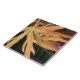 Konsten på denna 6-tums keramiska platta är ett originalfoto av en löv HomeWare på en ung korallfabrik. Växterna har palmat löv vars broschyrer har noterat kant. Efter ett skift i färg ser löv ut som rödaktigt guld. Blomkrukorna har blivit lila, allt mot en mörk brun och grönt bakgrund.