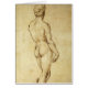 Sketch eller teckning i Michelangelos David av Raphael Sanzio, Raffaello (1483-1520) är en vintage Renaissance Era bra art porträtt biet som tittar på manmodellen bakifrån. Raphael har studerat både Leonardo da Vinci- och Michelangelos teknik och har gjort många skisser av livsmodeller på samma sätt som Michelangelos staty David.