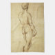Sketch eller teckning i Michelangelos David av Raphael Sanzio, Raffaello (1483-1520) är en vintage Renaissance Era bra art porträtt biet som tittar på manmodellen bakifrån. Raphael har studerat både Leonardo da Vinci- och Michelangelos teknik och har gjort många skisser av livsmodeller på samma sätt som Michelangelos staty David.