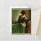 Studie i Black and Grönt av John White Alexander (Pennsylvania 1856-1915). Den idealiserade, omedgörliga kvinnan, som visade sig vara ett värdefullt objekt var en målarfavorit subjekt, här är en ung skönhet absorberad för att fästa en smäll eller blommar på hennes elegant kvällskurva. Kjolens sinuösa strimlade mönster, kurvor på knä och axlar och konturen av det uppsvept håret motiverar att Alexander betecknas som "en målarfärg på strömmen". Hans lysande penselarbete är särskilt anmärkningsvärt vid återgivningen av rikerna och i den annars rena bakgrunden.