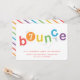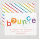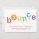 Denna inbjudan till studsande födelsedagsfest har studsande bokstäver i en könsneutral regnbågsfärgspalett av röd, orange, gul, grön, blå och lila med redigerbar ålder i O. Ett superroligt, könsneutralt alternativ för en trampolin-, gymnastik- eller studsfest. Denna inbjudan är inspirerad av alla barn som gillar att hoppa, studsa och flyga. Klicka på redigera för att anpassa.