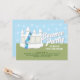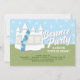 Söt & rolig studsande hus födelsedagsfest inbjudan med vitt studsande hus & ballonger