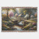 Denna förtrollande lantliga scen fångar ett drömlikt cottagecore-landskap fyllt med mjukt gyllene ljus, blommande vildblommor och en forsande bäck under en rustik träbro. En charmig stuga vilar bland frodiga träd målade i pastellrosa, friska gröna och varma ambernyanser, och skapar en fantasifull saga-atmosfär. Kompositionen blandar folkligt romantisk känsla med målerisk detaljrikedom och frammanar stillsamma morgnar, fågelsång och fredliga lantliga utflykter. Ömtåliga blommor inramar vattnets speglande yta medan fläckvis solljus filtrerar genom höga träd och tillför värme och djup till den lugna miljön. Den övergripande estetiken känns nostalgisk, mysig och mjukt magisk – perfekt för dem som dras till cottagecore-charm, pastorala skönhet och sagoinspirerade landskap. Den harmoniska